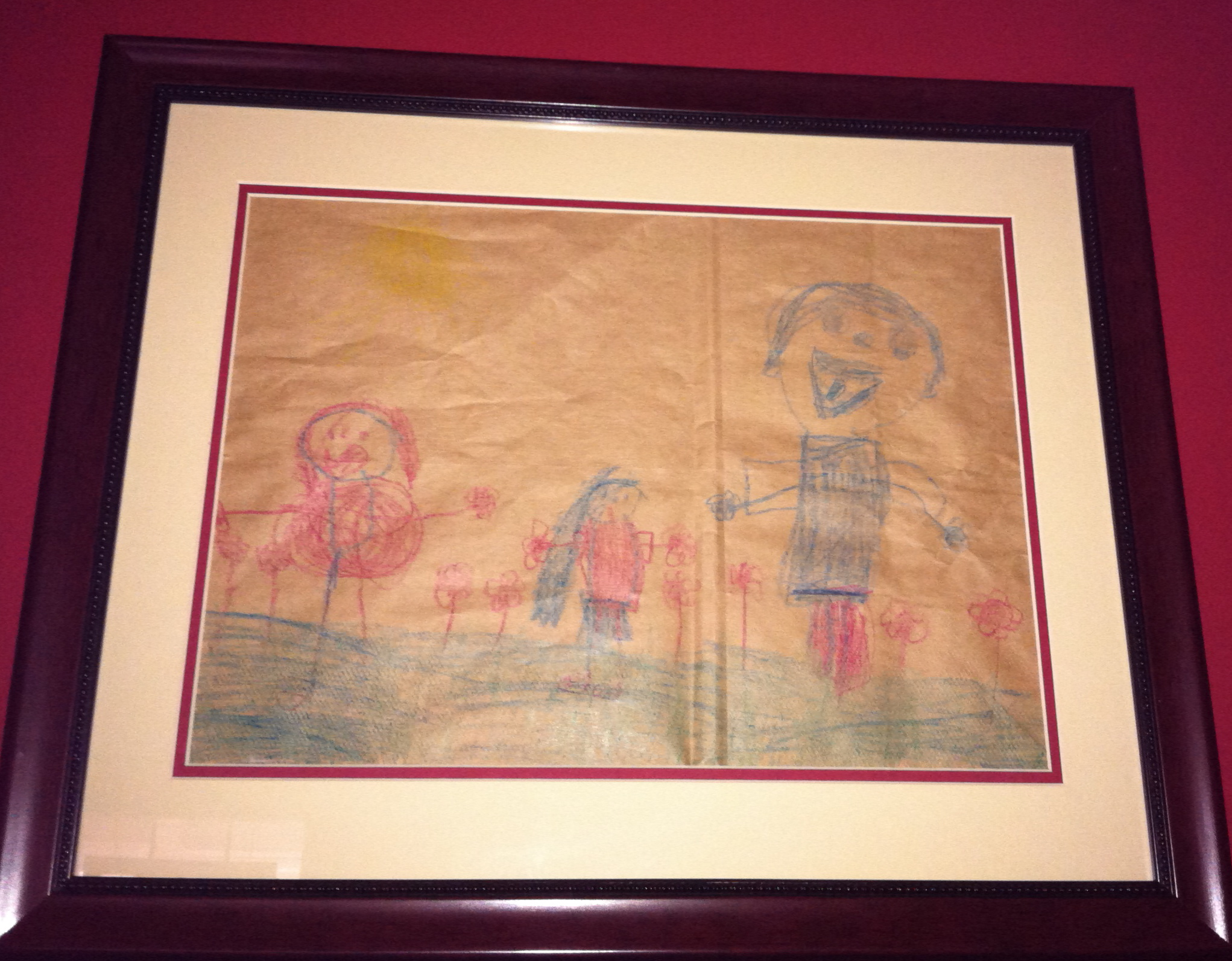 2.  Art You Love ~ I framed a picture Tater drew on a paper bag at a Bar-B-Que restaurant last summer and gave it to Mac for Christmas.  ‘Nuff said.