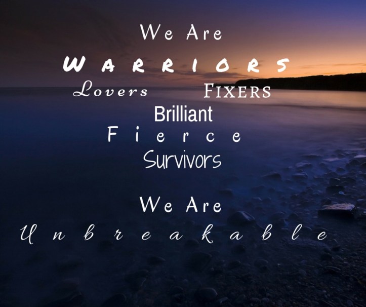 January 14, 2016January 14, 2016Sasha We are Warriors and Unbreakable Thanks for sharing my words! Share here: Click to share on X (Opens in new window) X Click to share on Pinterest (Opens in new window) Pinterest Click to share on Tumblr (Opens in new window) Tumblr Click to share on Facebook (Opens in new window) Facebook Click to email a link to a friend (Opens in new window) Email Like Loading...